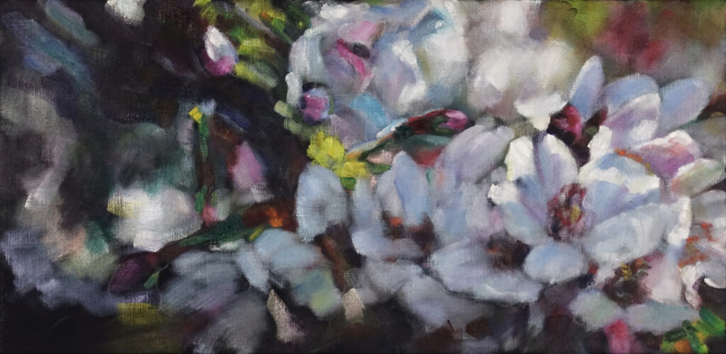Kirschblüten (7), 2025, Öl auf Leinwand, 28,5x15cm